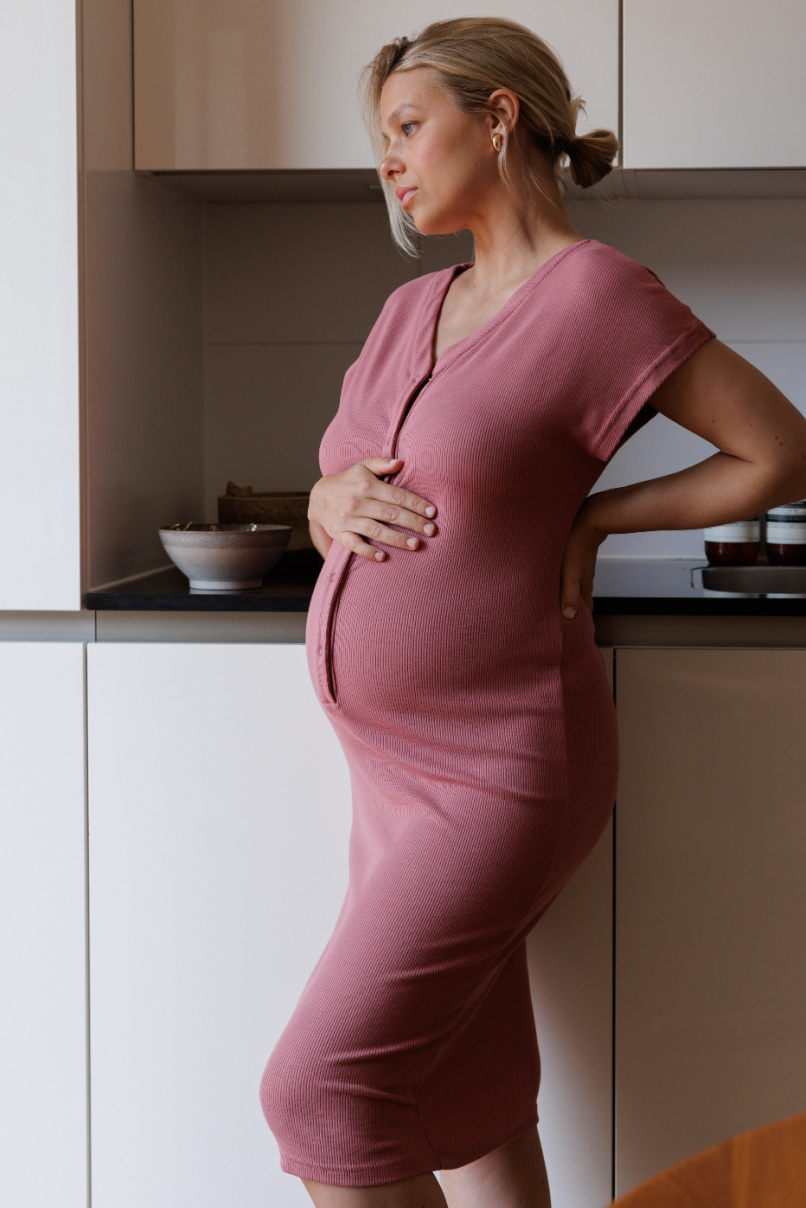 If you are in doubt between a size, use the size of a stretch t-shirt when ordering. The Birth Dress has no shoulder seams and always fits beautifully at the top. The fabric is very elastic, comfortable and super stretch. If you have a measuring tape at home, you can measure your favorite t-shirt, lay it flat on the table and measure the chest size in cm = armpit to armpit.